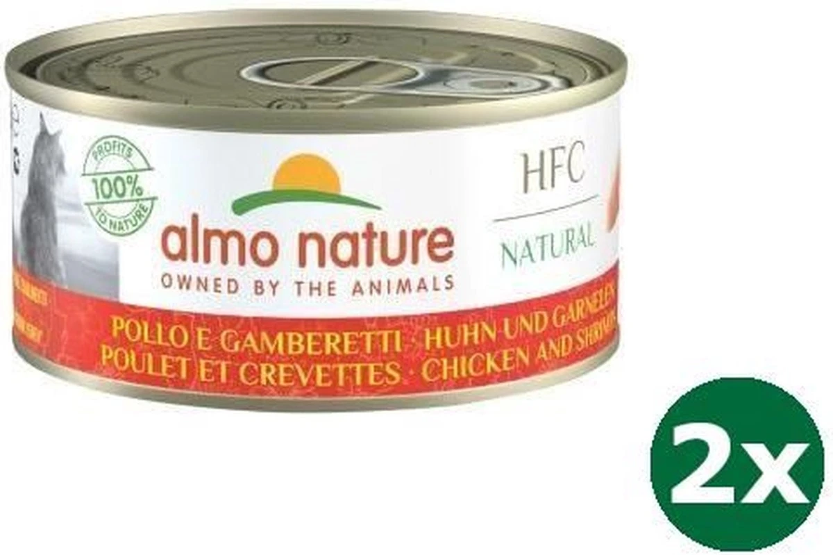 Almo Nature Cat Kip/Garnaal 24×70 grAlmo Nature maakt deel uit van het segment Natural omdat dit uitsluitend bestaat uit wit vlees, rood vlees, vis en eventueel groente, in de delen die geschikt zijn voor menselijke consumptie maar die hier om commerciële redenen niet voor bestemd zijn, geconserveerd in hun eigen kookbouillon en soms met een klein percentage rijst als enige toevoeging. Het gebruik van alle soorten bijproducten is uitgesloten evenals aanvullingen van mineralen, vitaminen en/of additieven: het product is er namelijk reeds van nature rijk aan.Almo Nature Cat Kip/Garnaal is aanvullende diervoeding voor katten.Samenstelling: Kip 55%, kipbuillon 24%, garnaaltjes 20%, rijst 1%.Analytische bestanddelen: Ruw eiwit 20%, ruwe celstof 1%, ruw vet 0.5%, ruwe as 2%, vocht 78%. 742 kcal/kg.Voedingsadvies: Wij adviseren katten te voeden met 40% droogvoer