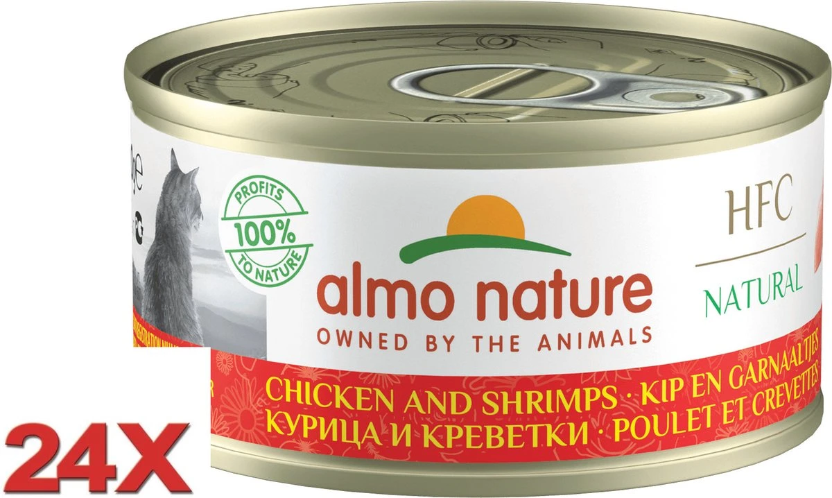 Almo Nature Natural Kip en Garnaaltjes is een hoogwaardige, aanvullende voeding voor uw volwassen kat. Het smakelijke natvoer is zo samengesteld dat zij perfect aansluit bij de voedingsbehoeften van uw kat. Zo bestaat het uit wel 75% vlees en vis en is het product natuurlijk geconserveerd in het eigen kookvocht. Want Almo Nature staat voor een natuurlijke voeding en gebruikt geen chemische toevoegingen in het bereidingsproces.