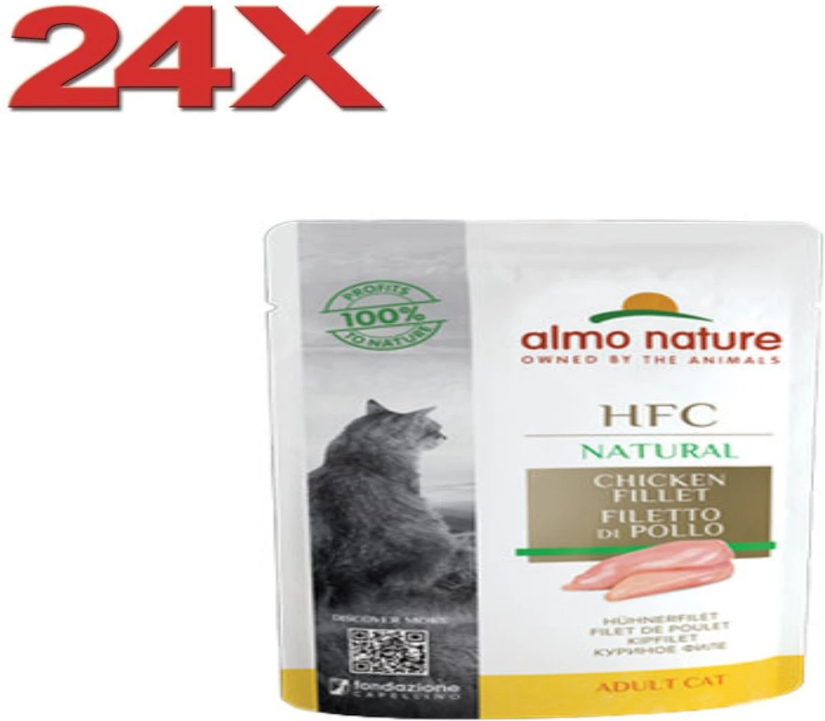 Almo Nature HFC Natural Kattenvoer – Maaltijdzakje – Kipfilet is een maaltijd voor de kat. Deze ‘single serve’ maaltijd is handig verpakt in een zakje van 55 gram en kan direct in het etensbakje van de kat worden geserveerd. Deze klassieke en smaakvolle maaltijd bestaat enkel uit pure ingrediënten en bevat een hoog percentage vlees en/of vis. Daarnaast is de vis vers gevangen uit de zee (geen kweekvis) en is het vlees afkomstig uit de vrije houding (vrij van hormonen en antibiotica tijdens het fokken).