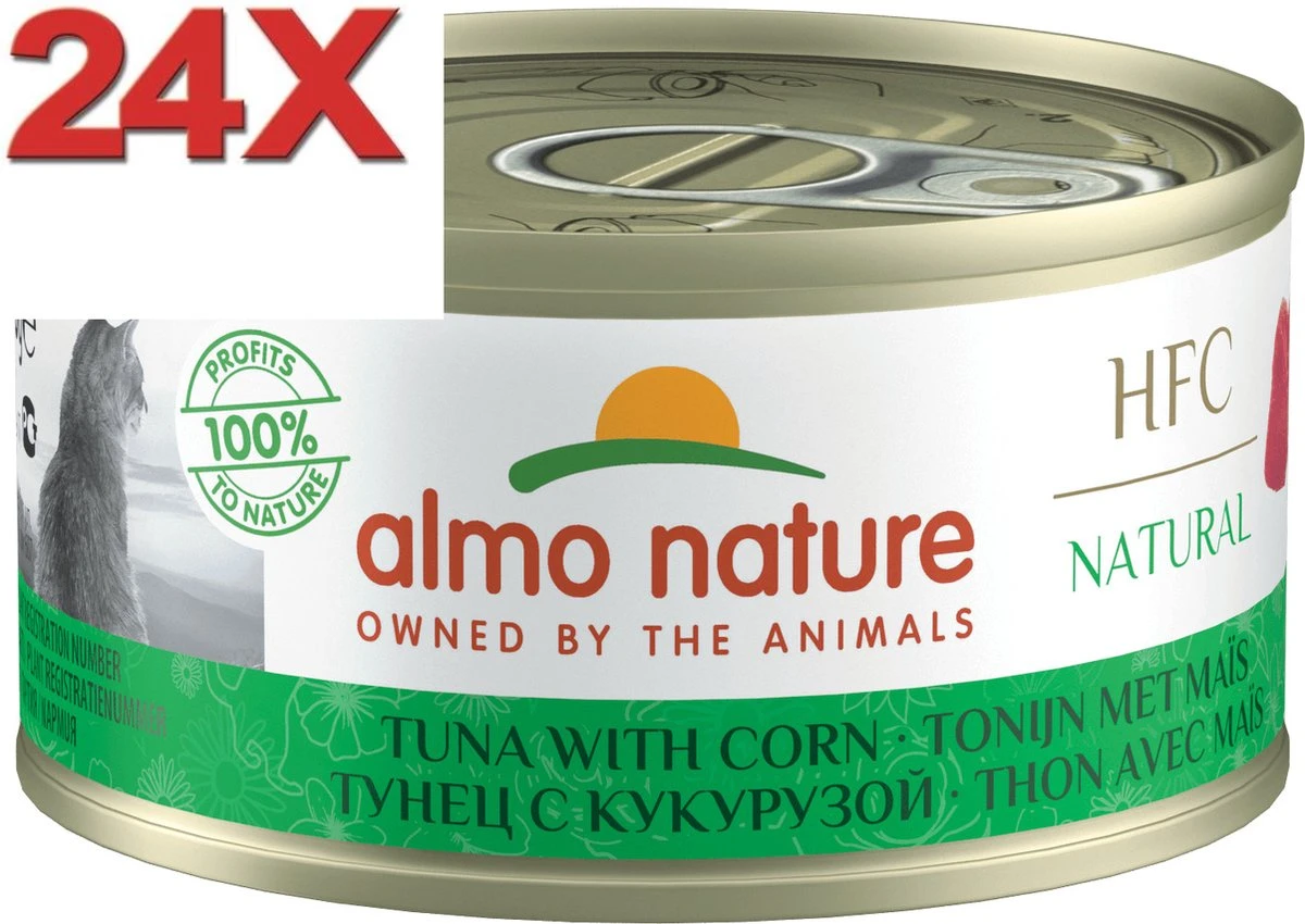 Almo Nature Natural Tonijn met Mais bestaat enkel uit natuurlijke ingrediënten die afkomstig zijn uit dezelfde sector als de voeding van de mens. Door het voer te halen uit de menselijke voedingssector kan Almo de kwaliteit van haar ingrediënten altijd garanderen. Almo Nature Natural Tonijn met Mais is niet aangevuld met toegevoegde vitaminen en mineralen, omdat deze van nature al in de voeding aanwezig zijn. Daarnaast zijn er geen chemische bewerkingen aan het voer vooraf gegaan. Er is gebruik gemaakt van een natuurlijke conservering en ook de toevoeging van kleurstoffen is achterwege gelaten. De tonijn die in het voer aanwezig is bevat veel omega-3 vetzuren. Deze zorgen ervoor dat de huid en vacht van uw kat gezond blijven. Dankzij de natuurlijke samenstelling van het voer zal vrijwel elke kat smullen wanneer hij Almo Nature Natural Tonijn met Mais voorgeschoteld krijgt.