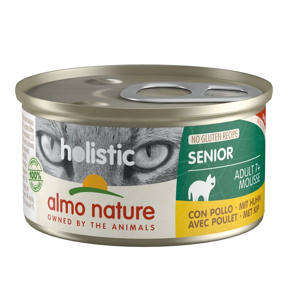 Holistic Natvoer Senior 7+ is een volledig en volwaardig glutenvrij kattenvoer die alle noodzakelijke voedingsstoffen bevat voor een uitgebalanceerd dieet. Dit receptuur is speciaal afgestemd op de voedingsbehoeften van oudere katten. De heerlijke mousse zorgt ervoor dat het natvoer makkelijk te kauwen is.